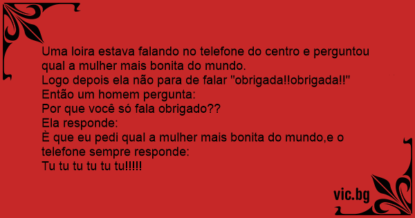 Uma loira estava falando no telefone do centro e perguntou qual a mulher mais bonita do mundo.