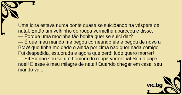 Uma loira estava numa ponte quase se suicidando na véspera de natal. Então um velhinho de roupa vermelha apareceu e disse: