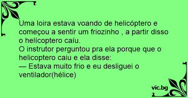 Uma loira estava voando de helicóptero e começou a sentir um friozinho , a partir disso o helícoptero caíu.