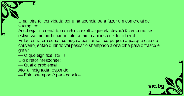 Uma loira foi convidada por uma agencia para fazer um comercial de shamphoo.