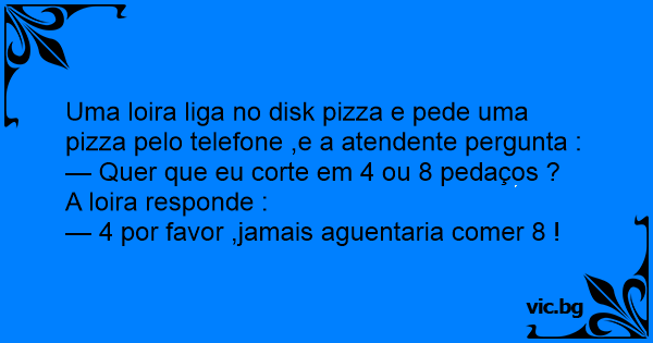 Uma loira liga no disk pizza e pede uma pizza pelo telefone ,e a atendente pergunta :