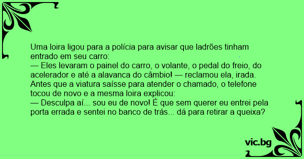 — Desculpa aí... sou eu de novo! É que sem querer eu entrei pela porta errada e sentei no banco de trás... dá para retirar a queixa?