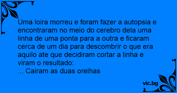 Uma loira morreu e foram fazer a autopsia e encontraram no meio do cerebro dela uma linha de uma ponta para a outra e ficaram cerca de um dia para descombrir o que era aquilo ate que decidiram cortar a linha e viram o resultado: