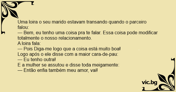 Uma loira o seu marido estavam transando quando o parceiro falou: