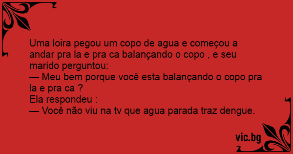 Uma loira pegou um copo de agua e começou a andar pra la e pra ca balançando o copo , e seu marido perguntou: