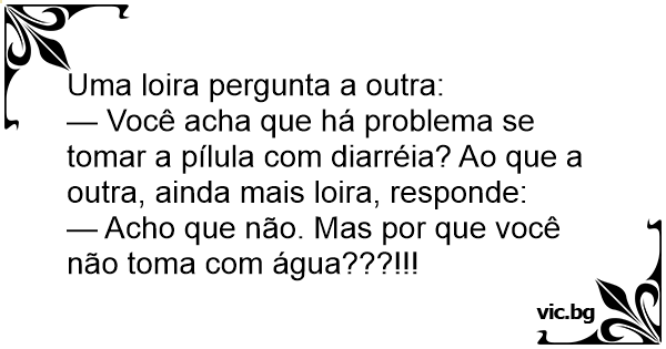 — Você acha que há problema se tomar a pílula com diarréia? Ao que a outra, ainda mais loira, responde:
