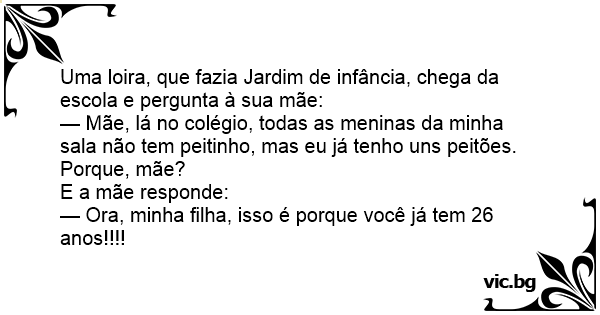 Uma loira, que fazia Jardim de infância, chega da escola e pergunta à sua mãe: