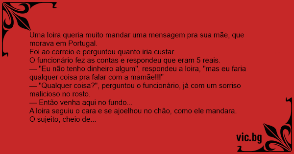 Uma loira queria muito mandar uma mensagem pra sua mãe, que morava em Portugal.