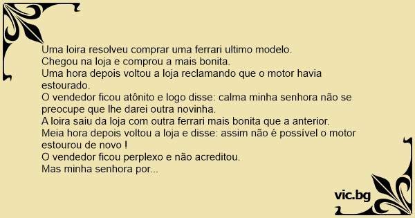 Uma loira resolveu comprar uma ferrari ultimo modelo.