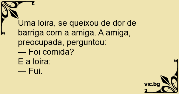 Uma loira, se queixou de dor de barriga com a amiga. A amiga, preocupada, perguntou:
