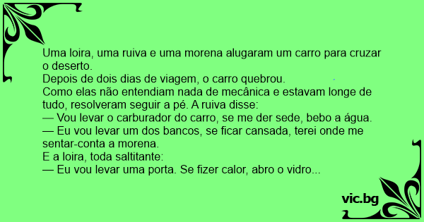 Uma loira, uma ruiva e uma morena alugaram um carro para cruzar o deserto.