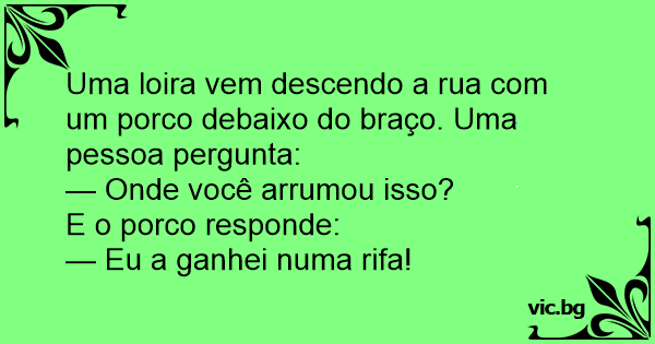 Uma loira vem descendo a rua com um роrсо debaixo do braço. Uma pessoa pergunta: