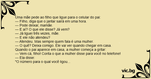 — Vem cá, filho! Conta o que a mulher disse para você no telefone!