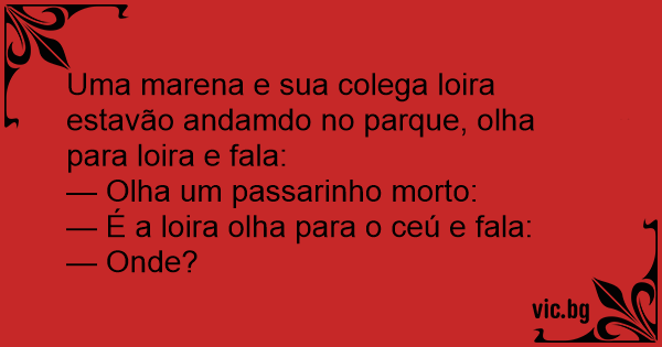 Uma marena e sua colega loira estavão andamdo no parque, olha para loira e fala: