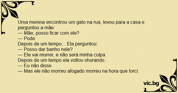 Uma menina encontrou um gato na rua, levou para a casa e perguntou a mãe: