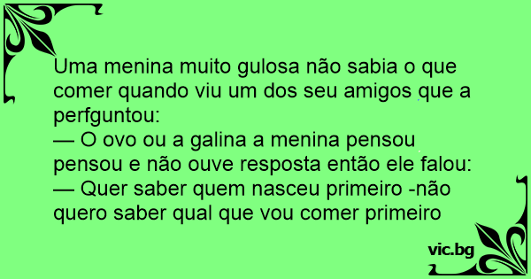 — O ovo ou a galina a menina pensou pensou e não ouve resposta então ele falou: