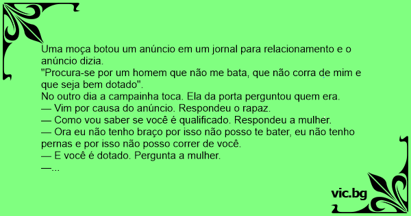 Uma moça botou um anúncio em um jornal para relacionamento e o anúncio dizia.