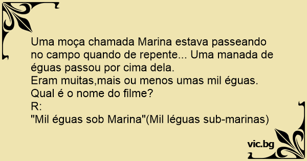Uma moça chamada Marina estava passeando no campo quando de repente... Uma manada de éguas passou por cima dela.