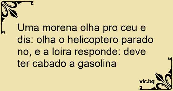 Uma morena olha pro ceu e dis: olha o helicoptero parado no, e a loira responde: deve ter cabado a gasolina