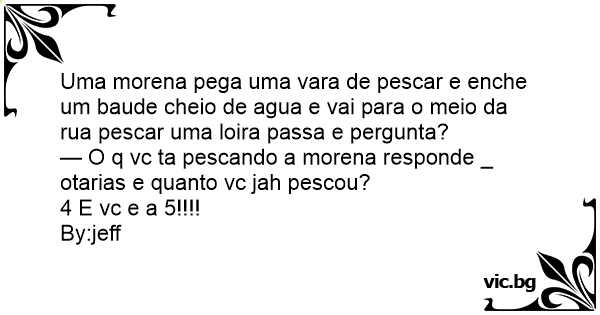 Uma morena pega uma vara de pescar e enche um baude cheio de agua e vai para o meio da rua pescar uma loira passa e pergunta?