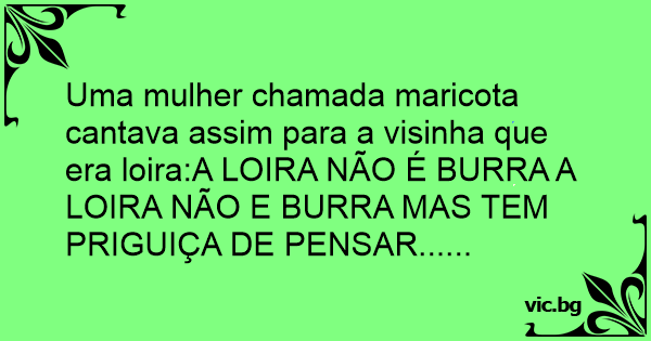 Uma mulher chamada maricota cantava assim para a visinha que era loira:A LOIRA NÃO É BURRA A LOIRA NÃO E BURRA MAS TEM PRIGUIÇA DE PENSAR......