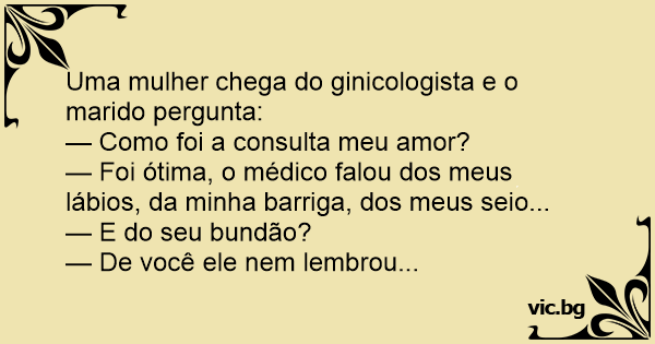 Uma mulher chega do ginicologista e o marido pergunta: