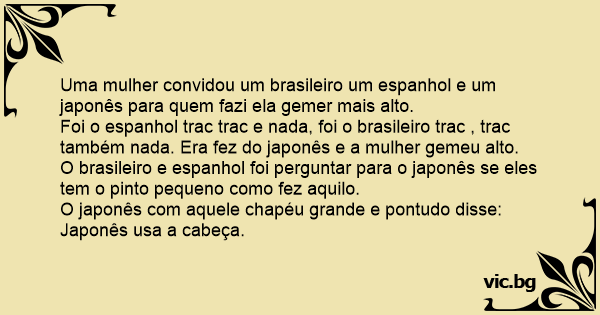 Foi o espanhol trac trac e nada, foi o brasileiro trac , trac também nada. Era fez do japonês e a mulher gemeu alto.