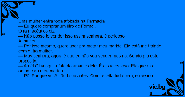 — Por isso mesmo, quero usar pra matar meu marido. Ele está me traindo com outra mulher.