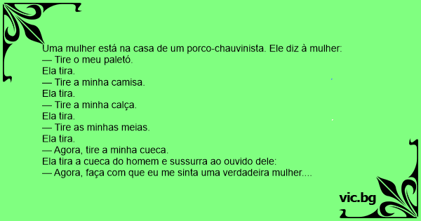 Uma mulher está na casa de um роrсо-chauvinista. Ele diz à mulher: