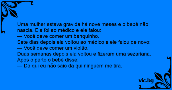 Uma mulher estava gravida há nove meses e o bebê não nascia. Ela foi ao médico e ele falou:
