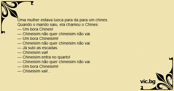 — Chineisim não quer chineisim não vai. Chineisim gostou chineism quer mais!