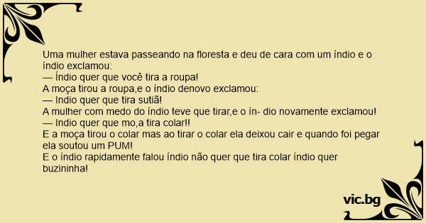 Uma mulher estava passeando na floresta e deu de cara com um índio e o índio exclamou: