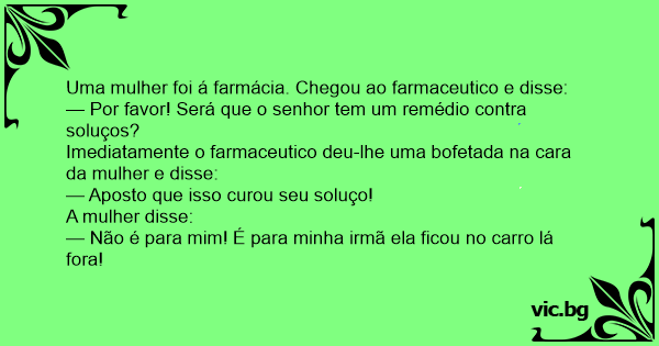 — Por favor! Será que o senhor tem um remédio contra soluços?
