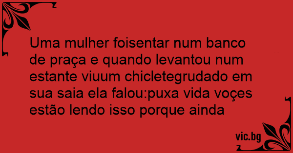 Uma mulher foisentar num banco de praça e quando levantou num estante viuum chicletegrudado em sua saia ela falou:puxa vida voçes estão lendo isso porque ainda