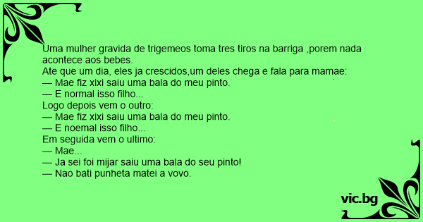 — Mae fiz xixi saiu uma bala do meu pinto.