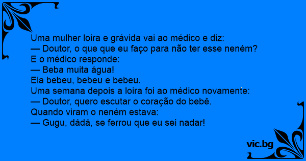 Uma mulher loira e grávida vai ao médico e diz: