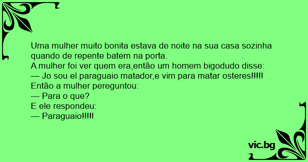 A mulher foi ver quem era,então um homem bigodudo disse: