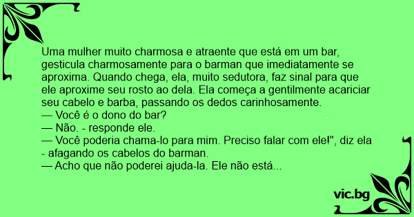 — Você poderia chama-lo para mim. Preciso falar com ele!", diz ela - afagando os cabelos do barman.