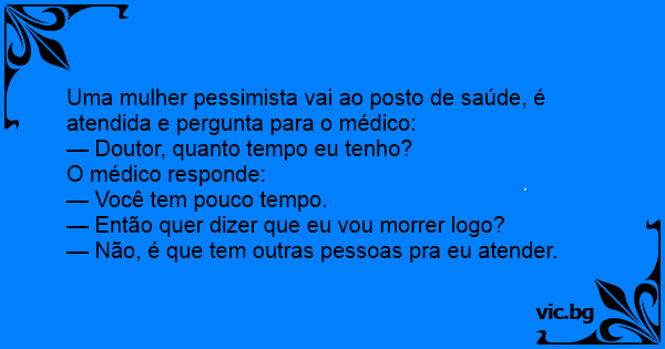 Uma mulher pessimista vai ao posto de saúde, é atendida e pergunta para o médico:
