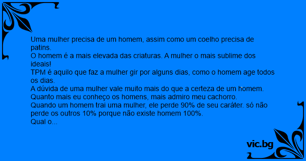 Uma mulher precisa de um homem, assim como um coelho precisa de patins.