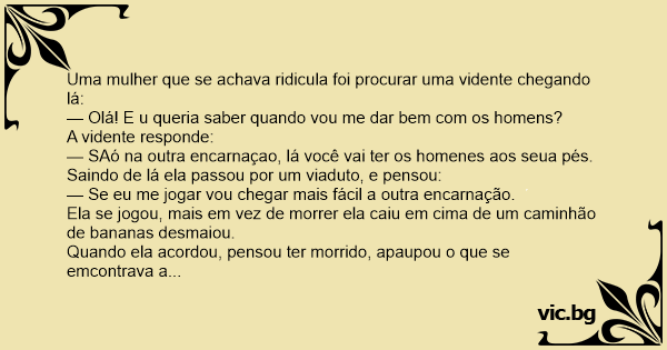 Uma mulher que se achava ridicula foi procurar uma vidente chegando lá: