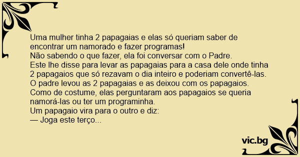 Uma mulher tinha 2 papagaias e elas só queriam saber de encontrar um namorado e fazer programas!