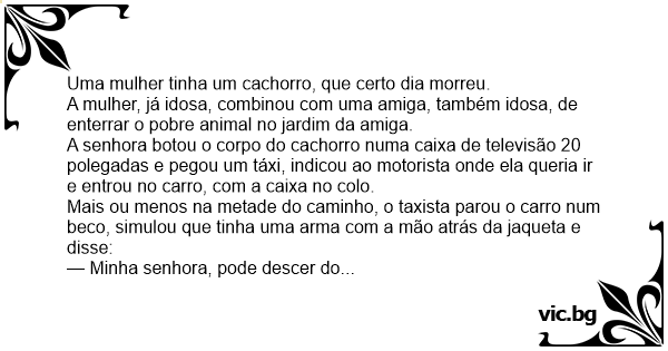 Uma mulher tinha um сасhоrrо, que certo dia morreu.
