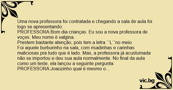 Uma nova professora foi contratada e chegando a sala de aula foi logo se apresentando: