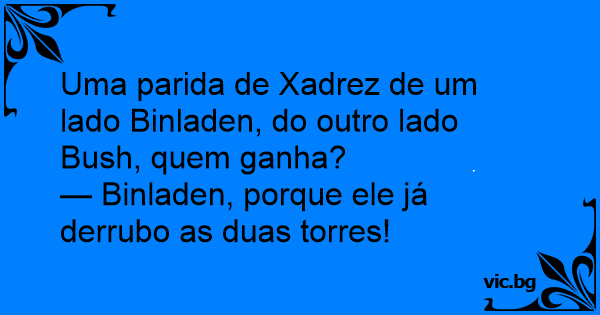 Vem vinner i schack – Bush eller Osama Bin Ladin? Det gör Bin Ladin eftersom Bush saknar två torn.