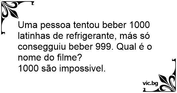 Uma pessoa tentou beber 1000 latinhas de refrigerante, más só consegguiu beber 999. Qual é o nome do filme?