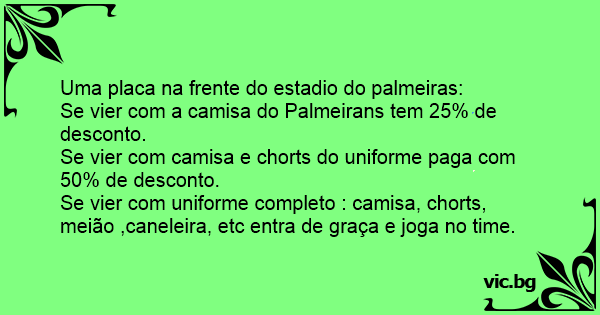Se vier com a camisa do Palmeirans tem 25% de desconto.
