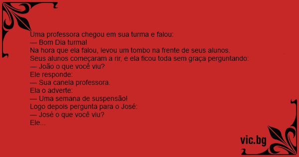 Uma professora chegou em sua turma e falou: