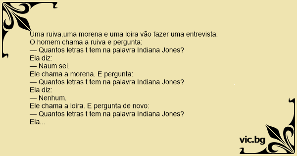 — Quantos letras t tem na palavra Indiana Jones?