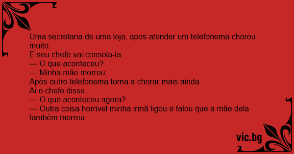 — Outra coisa horrivel minha irmã ligou e falou que a mãe dela tambèm morreu.